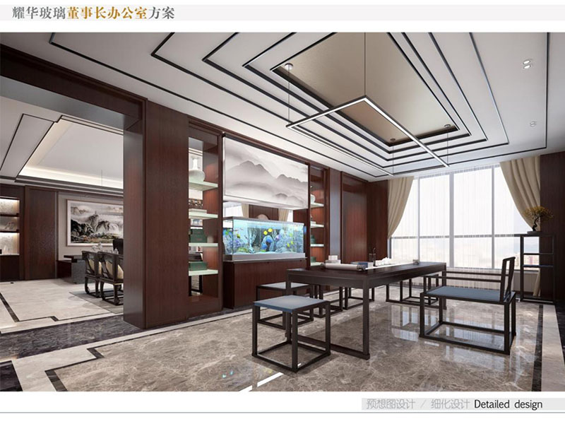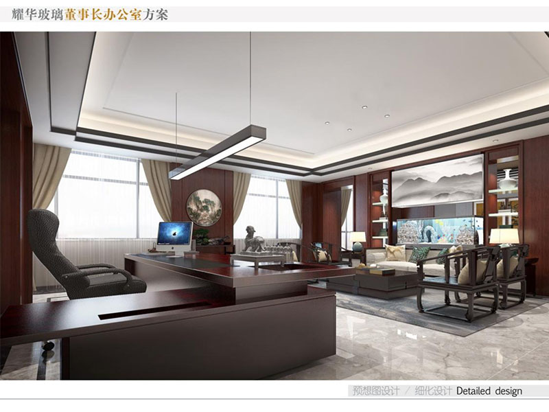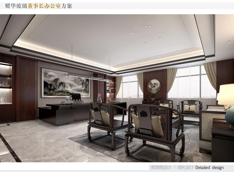 耀華玻璃董事長辦公室裝修效果圖彰顯出了企業(yè)的高端形象。董事長辦公室設(shè)計(jì)采用了中式風(fēng)格,運(yùn)用高質(zhì)量的木材、優(yōu)質(zhì)玻璃等,給辦公室營造出沉穩(wěn)的氣氛??臻g布局合理,既有寬敞的辦公區(qū),也有舒適的接待室和休息區(qū)。同時(shí),辦公室內(nèi)也會(huì)融入耀華玻璃的特色元素,如玻璃藝術(shù)品或公司標(biāo)志,體現(xiàn)企業(yè)品牌和創(chuàng)新精神。