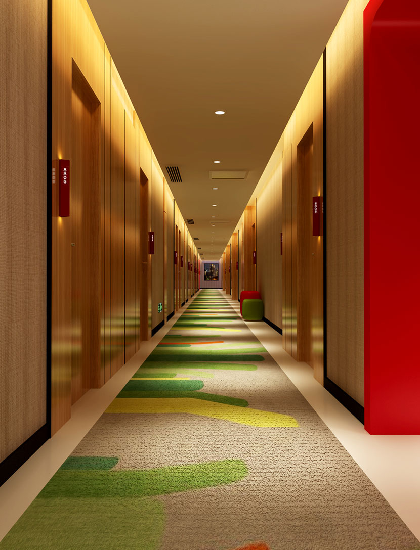 賓館走廊的裝修設(shè)計(jì)簡(jiǎn)約而不失高雅,墻面采用溫暖的木紋壁紙,營(yíng)造出寧?kù)o舒適的氛圍。頂部采用隱藏式LED照明,光線柔和均勻,既保證了照明需求,又不顯刺眼。地面鋪設(shè)著防滑易清潔的地毯,圖案簡(jiǎn)約大方,為賓客提供安全的行走體驗(yàn)。讓賓客在行走間也能感受到賓至如歸的舒適與愜意。