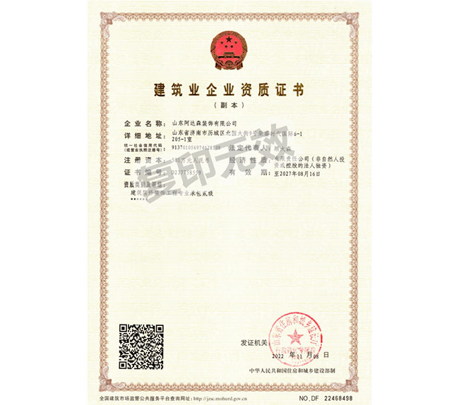 ? 山東阿達(dá)森裝飾有限公司是經(jīng)濟(jì)南市工商行政管理局正式批準(zhǔn)備案的正規(guī)裝飾企業(yè)。公司集辦公裝修設(shè)計(jì)、工程施工、建材配置、辦公家具配置于一體,涉及領(lǐng)域包括濟(jì)南店面裝修設(shè)計(jì)、寫字樓裝修、辦公室裝修、連鎖酒店賓館裝飾裝修、主題餐廳裝修、酒吧KTV裝修、家庭裝修裝潢等。